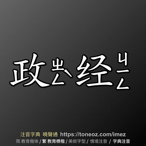 辭典解釋為:政,1.統治、管理。例:政治、政權 2.國家公務機關執行處理的業務。例:省政、財政、郵政 3.文字上的指正,多用為求教的詞語。例:乞政、斧政...