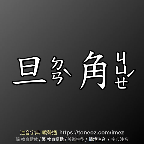 旦角,注音ㄉㄢˋ ㄐㄩㄝˊ ,拼音dàn jué ,辭典解釋為:傳統戲劇中扮演婦人腳色的演員。例:要成為有名的旦角必須下很多苦功。