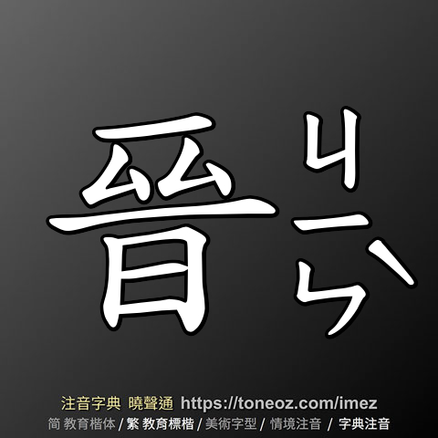 晉,注音ㄐㄧㄣˋ,拼音jìn,辭典解釋為:1.古國名。周朝分封的姬姓諸侯國。春秋時據有今山西大部分與河北西南地區,地跨黃河兩岸。後為韓、趙、魏三家所分,遂亡。