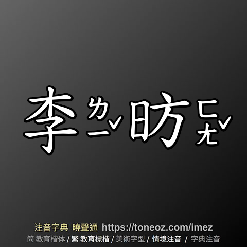 李昉,注音ㄌㄧˇ ㄈㄤˇ,拼音lǐ fǎng,辭典解釋為:人名。(西元925~996)字明遠,宋深州饒陽人。太宗時,任平章事。端拱年間,邊境告急,李昉引漢唐故事,以屈己、修好、弭兵、息民為言,受時人稱道。其性溫厚,好接賓客。為文慕白居易,淺近易懂。卒諡文正。曾奉敕編纂《太平御覽》、《太平廣記》、《文苑英華》等。