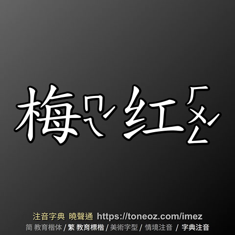 辭典解釋為:梅,1.植物名。薔薇科櫻屬,落葉喬木。性耐寒,葉呈卵形,早春開紅或白花,花五瓣。果實亦稱為「梅」,味酸,可食。例:寒梅、踏雪尋梅、望梅止渴 2.姓。...
