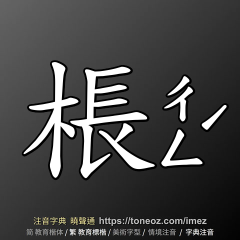 棖,注音ㄔㄥˊ,拼音chéng,辭典解釋為:[名] 豎立在門兩旁的長木柱。《爾雅.釋宮》:「棖謂之楔。」晉.郭璞.注:「門兩旁木。」 [動] 碰觸。通「樘」。《文選.謝惠連.祭古冢文.序》:「以物棖撥之,應手灰滅。」唐.李善.注:「南人以物觸物為棖也。」