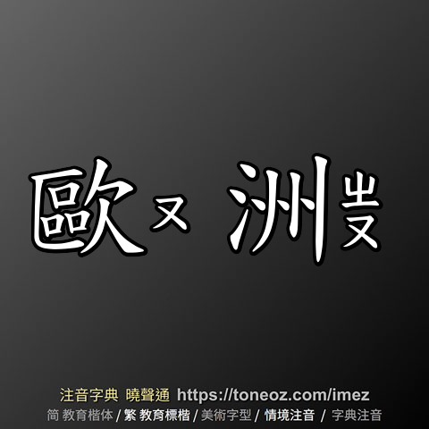 歐洲,注音ㄡ ㄓㄡ,拼音ōu zhōu,辭典解釋為:歐羅巴洲的簡稱。參見「歐羅巴洲」條。