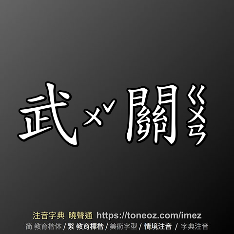 辭典解釋為:武,1.戰鬥、軍事、暴力等方面的事。例:動武、比武、整軍經武 2.與軍事、戰鬥有關的。與「文」相對。例:武器、武士、武力 3.勇敢、威猛。例:勇武、威武、孔武有力 4.姓。...