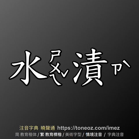 水漬,注音ㄕㄨㄟˇ ㄗˋ,拼音shuǐ zì,辭典解釋為:水的汙痕。《儒林外史》第四二回:「拿汗巾揩乾了杯子上一轉的水漬,走上去,奉與大爺、二爺。」