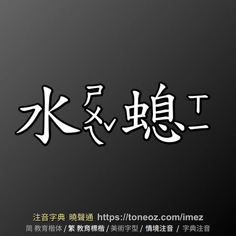 水螅,注音ㄕㄨㄟˇ ㄒㄧ,拼音shuǐ xī,辭典解釋為:動物名。腔腸動物門水螅綱。生於淡水,體長圓,呈綠褐色。一端有吸盤,會黏在水中草枝上,他端有口,口緣環生絲狀觸手,能捕取食物。大多為雌雄同體,可行無性生殖與有性生殖。例:水螅的再生能力很強,常成為實驗的對象。