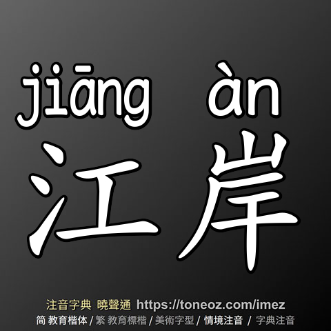 辭典解釋為:江岸,英English: Jiang'an district of Wuhan city 武漢市|武汉市[Wu3 han4 shi4], Hubei...