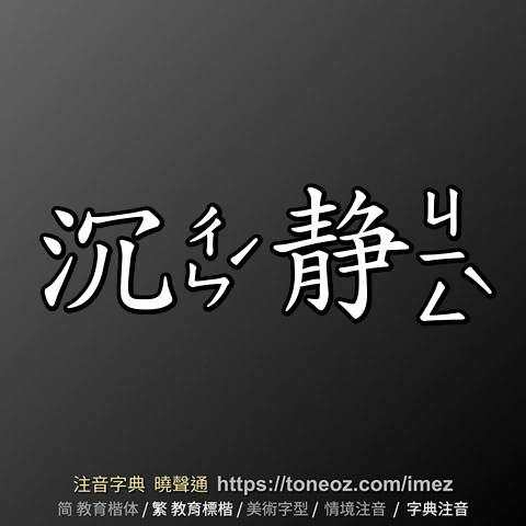 辭典解釋為:沉,1.沒入水中。與「浮」相對。例:沉沒、石沉大海  2.往下降落。例:星沉月落、太陽西沉 3.抑制。例:沉不住氣 4.分量重、壓力大的。例:沉重、沉甸甸 5.程度深的。例:沉睡、沉醉...