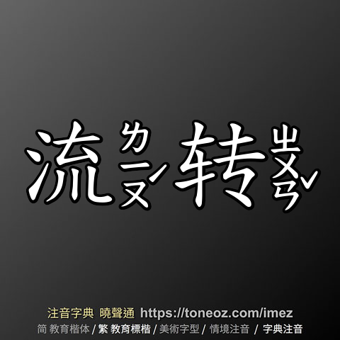 辭典解釋為:流,1.水的通稱。例:水流、隨波逐流 2.像水流的東西。例:電流、氣流、車流 3.移動。例:人口外流 4.放逐。例:流放 5.趨向。例:流於形式 6.品類、等級。例:名流、上流、一流、九流十家 7.留傳、散布。例:流芳萬世 8.往來不定的、運轉不停的。例:流民、流星、流年 9.意外的、沒有根據的。例:流彈、流矢、流言 10. 古代一種將犯人放逐遠方的刑法。例:流放...