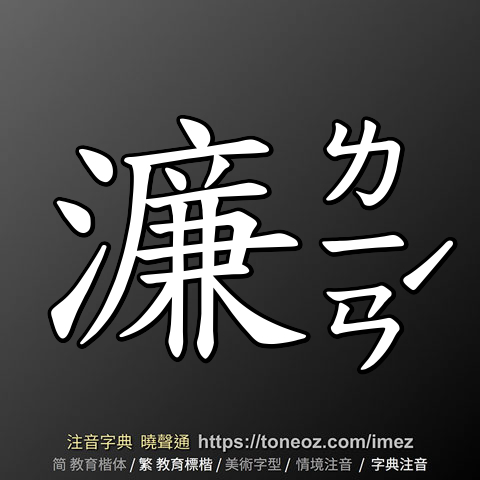 濂,注音ㄌㄧㄢˊ,拼音lián,辭典解釋為:→濂溪