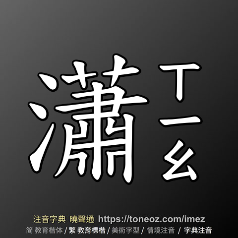 瀟,注音ㄒㄧㄠ,拼音xiāo,辭典解釋為:風雨狂急的樣子。例:風雨瀟瀟