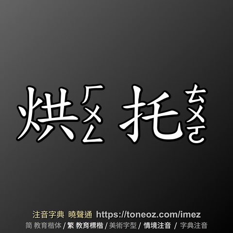 烘托,注音ㄏㄨㄥ ㄊㄨㄛ,拼音hōng tuō,辭典解釋為:從周圍或旁邊渲染,使主體或重點更加顯明。例:這齣戲因為配角的烘托,使主角形象更為鮮明。