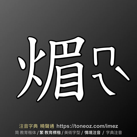 辭典解釋為:煝,英English: be radiant, flaming, drought...