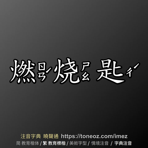 辭典解釋為:燃,焚燒。例:燃燒、點燃、燃眉之急...