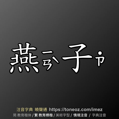 燕子,注音ㄧㄢˋ ˙ㄗ,拼音yàn zi,辭典解釋為:→燕