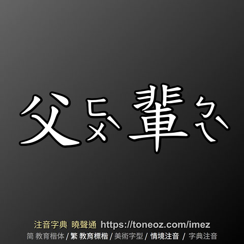 父輩,注音ㄈㄨˋ ㄅㄟˋ,拼音fù bèi,辭典解釋為:跟父親同輩的親長。元.喬吉《揚州夢》第一折:「有太守牛僧孺,原是父輩,今日設席相請,須索走一遭去。」《精忠岳傳》第七八回:「雖如此,他乃父輩,非比他人。」