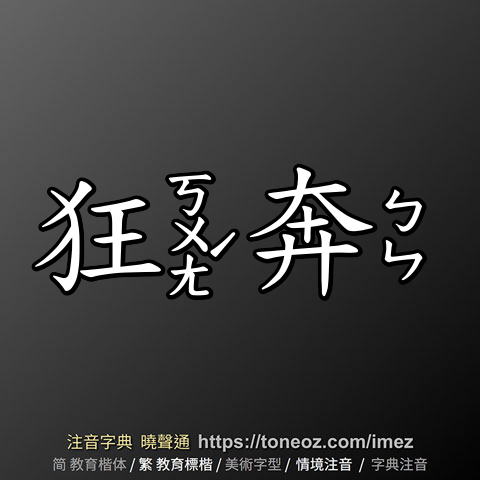 狂奔 - 教育字典 快速核校注音 曉聲通