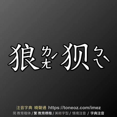 狼狈 - 教育字典 快速核校注音 曉聲通