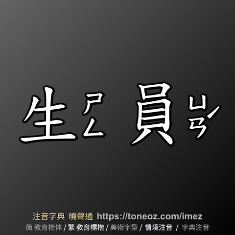 生員,注音ㄕㄥ ㄩㄢˊ,拼音shēng yuán,辭典解釋為:科舉時代考試合格入各府、州、縣學讀書的學生。例:在明清時代,生員通稱為「秀才」。