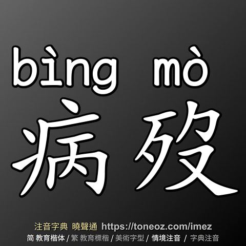 病歿,注音ㄅㄧㄥˋ ㄇㄛˋ,拼音bìng mò,辭典解釋為:因病而死。如:「如此勤政愛民的好縣長,卻積勞成疾,不幸於任上病歿了。」也作「病沒」。