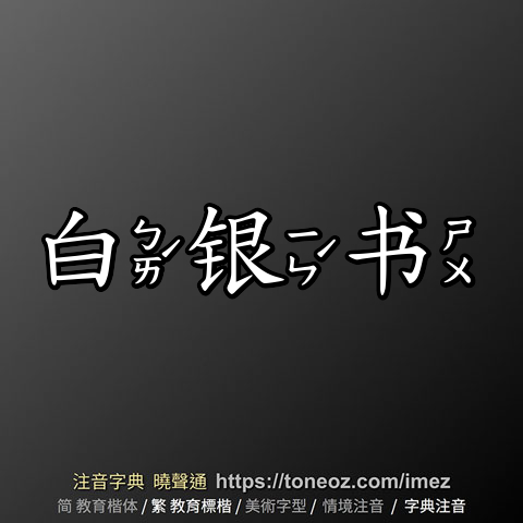 辭典解釋為:白,1.完全反射光線,像雪或乳汁般素淨的顏色。與「黑」相對。例:雪白、純白、黑白分明 2.白色的。例:白紙、白布、藍天白雲 3.清楚。例:真相大白、含冤莫白、明白 4.空空的,沒加上任何東西的。例:白飯、白開水 5.徒然、枉費。例:他們只認得錢,託他們真是白託。 6.不付代價而得好處。例:白吃、白喝 7.以合法掩護非法,以正當掩護不法的。與「黑」相對。例:白道 8.陳述、說話。例:自白、表白、道白 9.字寫錯。例:這字寫白了。 10. 姓。...