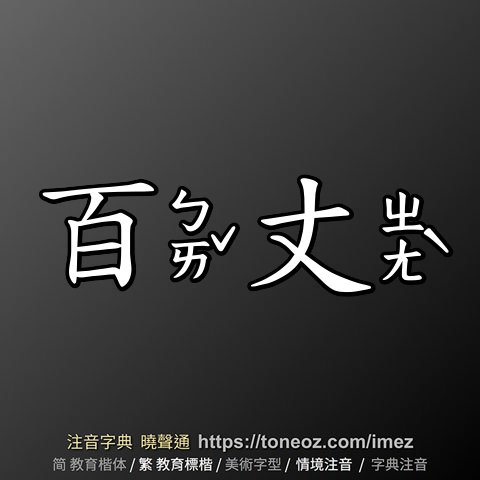 百丈,注音ㄅㄞˇ ㄓㄤˋ,拼音bǎi zhàng,辭典解釋為:1.形容極為深長廣遠。《文選.枚乘.七發》:「上有千仞之峰,下臨百丈之谿。」《文選.沈約.新安江水至清淺深見底貽京邑遊好詩》:「千仞寫喬樹,百丈見遊鱗。」 2.拖船的縴子。用一寸多寬的毛竹片,以生漆絞著麻絲接成,約一百多丈,故稱為「百丈」。《醒世恆言.卷二五.獨孤生歸途鬧夢》:「風略小些,便要扯著百丈。你道怎麼叫做百丈?原來就是縴子。」 3.唐朝百丈懷海禪師。福州長樂人。從西山慧照法師出家,後到江西向馬祖道一禪師參學,並在道一處得到證悟。道一圓寂後,初住石門,後住大雄山。大雄山岩巒高峻,有百丈山之稱,所以世人稱他為「百丈懷海」。懷海除繼承道一的禪法外,並將禪法運用於勞動中,實行一日不作一日不食的規制,折衷大小乘戒律,首創禪院的清規。