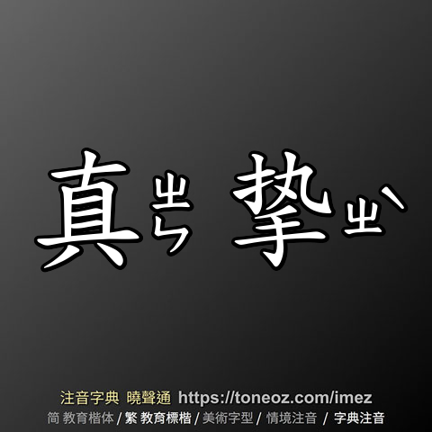 辭典解釋為:真,1.自然、本性。例:天真、返璞歸真 2.原來的樣子。例:寫真、傳真、失真 3.本來的、不虛假的。與「假」相對。例:真相、真心、真理 4.的確、實在。例:真好、真棒...