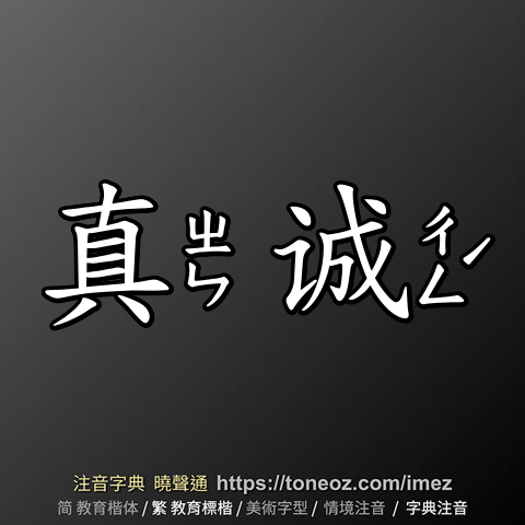 辭典解釋為:真,1.自然、本性。例:天真、返璞歸真 2.原來的樣子。例:寫真、傳真、失真 3.本來的、不虛假的。與「假」相對。例:真相、真心、真理 4.的確、實在。例:真好、真棒...