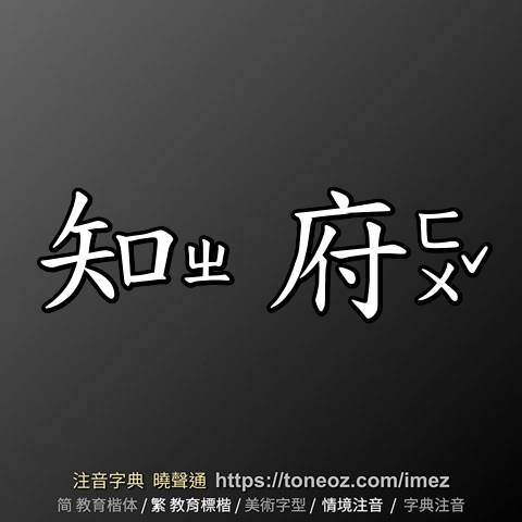 知府,注音ㄓ ㄈㄨˇ,拼音zhī fǔ,辭典解釋為:古代統轄一府的行政長官。例:知府大人