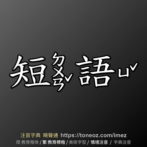 短語,注音ㄉㄨㄢˇ ㄩˇ,拼音duǎn yǔ,辭典解釋為:簡短的語言、文字。例:他從外地捎來短語向家人報平安。