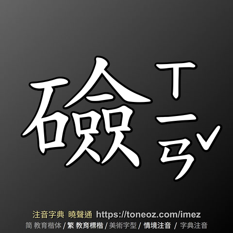 辭典解釋為:礆,英English: variant of 鹼|碱[jian3]...