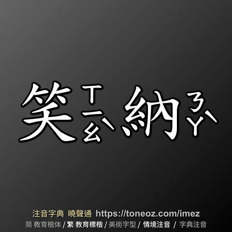 笑納,注音ㄒㄧㄠˋ ㄋㄚˋ,拼音xiào nà,辭典解釋為:餽贈禮物時,請人接受的客氣話。例:一點小意思,不成敬意,請笑納!