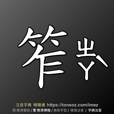 笮,注音ㄓㄚˋ,拼音zhà,辭典解釋為:[名] 壓酒的器具。同「醡」。《廣韻.去聲.禡韻》:「笮,笮酒器也。」 [動] 壓、榨。《後漢書.卷一九.耿恭傳》:「吏士渴乏,笮馬糞汁而飲之。」