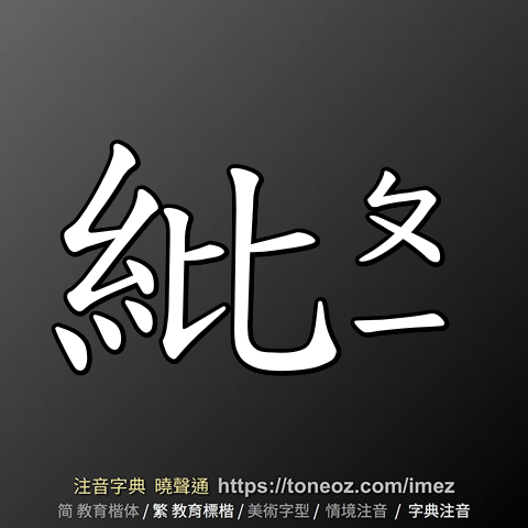 紕,注音ㄆㄧ,拼音pī,辭典解釋為:1.衣冠或旗幟的緣飾。例:縞冠素紕 2.織布時經緯線沒織好的地方。引申為錯誤。例:紕繆、紕漏