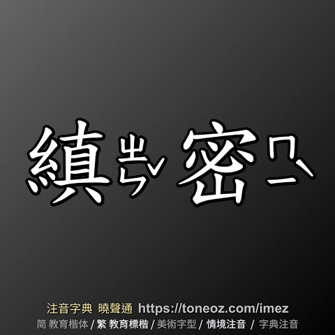 縝密,注音ㄓㄣˇ ㄇㄧˋ,拼音zhěn mì,辭典解釋為:周密、謹慎細心。例:這個計畫事先經過縝密的研究和討論,因此進行起來十分順利。