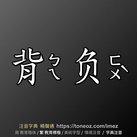 辭典解釋為:背,用背、肩膀來負荷、承擔。例:背負、背書包、背小孩 ...