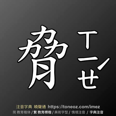 脅,注音ㄒㄧㄝˊ,拼音xié,辭典解釋為:1.胸部兩側,由腋下至肋骨盡處的部位。亦指肋骨。例:兩脅 2.逼迫。例:威脅
