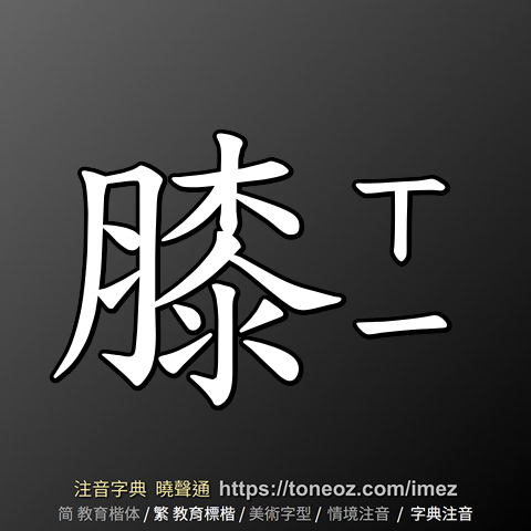 膝,注音ㄒㄧ,拼音xī,辭典解釋為:人體大腿與小腿相連處的外部關節,可隨意屈伸。例:屈膝、抱膝、膝蓋