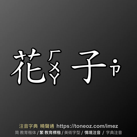 花子,注音ㄏㄨㄚ ˙ㄗ,拼音huā zi,辭典解釋為:乞丐。《喻世明言.卷二八.李秀卿義結黃貞女》:「是人家各有內外,甚麼花子,一些體面不存,直入內室,是何道理?」《兒女英雄傳》第三回:「有一等人,往往的就扮作討吃的花子,……來給強盜作眼線。」也稱為「叫花子」。