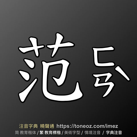 范,注音ㄈㄢˋ,拼音fàn,辭典解釋為:姓。