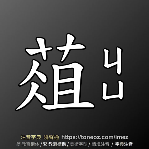 葅,注音ㄐㄩ,拼音jū,辭典解釋為:同「菹」。《玉篇.艸部》:「葅,同菹。」