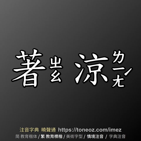 著涼,注音ㄓㄠ ㄌㄧㄤˊ,拼音zhāo liáng,辭典解釋為:受到風寒。例:最近早晚溫差甚大,要注意添加衣服,才不會著涼。