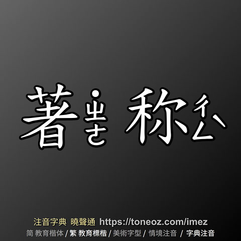 辭典解釋為:著,1.撰述、寫作。例:編著、著書立說 2.文章、作品的通稱。例:名著、巨著 3.明白、清楚。例:顯著、昭著...