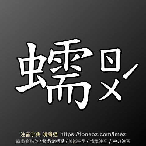 蠕,注音ㄖㄨˊ,拼音rú,辭典解釋為:蟲類緩慢爬行。例:蠕動