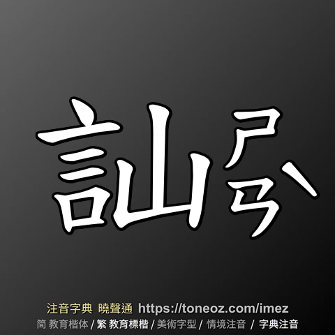 訕,注音ㄕㄢˋ,拼音shàn,辭典解釋為:毀謗、嘲諷。例:訕笑