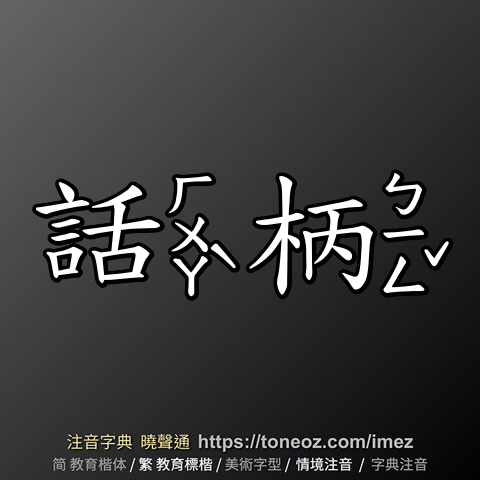 話柄,注音ㄏㄨㄚˋ ㄅㄧㄥˇ,拼音huà bǐng,辭典解釋為:被他人當作談論或說笑的言論、行為。例:他當街向女友求婚的韻事,已成為朋友閒聊的話柄。