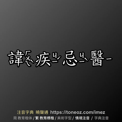 諱疾忌醫 - 教育字典 快速核校注音 曉聲通