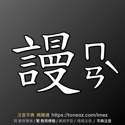 謾,注音ㄇㄢˊ,拼音mán,辭典解釋為:1.欺騙。例:欺謾、謾天謾地 2.毀謗。例:鄉則不若,偝則謾之。(《荀子.非相》)