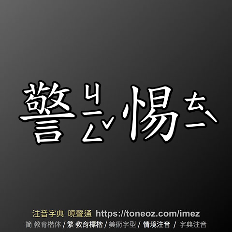 警惕,注音ㄐㄧㄥˇ ㄊㄧˋ,拼音jǐng tì,辭典解釋為:對可能發生的情況,心生警覺而加以戒備。例:學校播放反毒影片,以警惕同學勿受毒品誘惑。