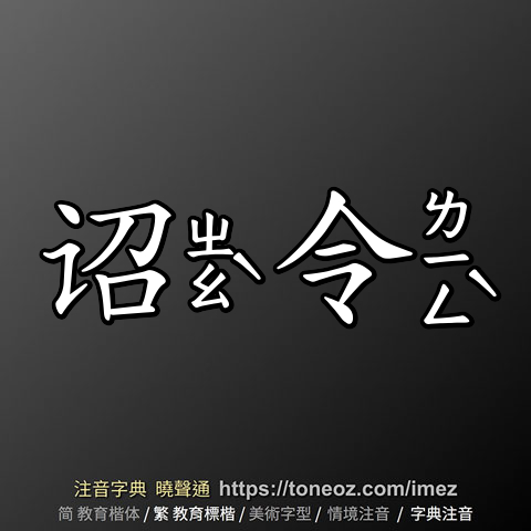 辭典解釋為:令,1.命令、法令。例:軍令、人事命令 2.時節。例:時令、節令、夏令 3.讓、使得。例:令人難堪 4.好的、善的。例:令德、令譽、令名 5.敬辭。用以尊稱他人的親屬。例:令尊、令堂、令郎 6.詞、曲中小令的簡稱。...